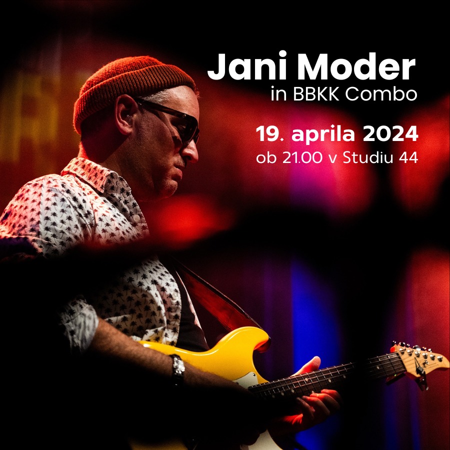 V petek, 19. aprila, ob 21. uri v Studio 44 prihaja Jani Moder, priznan kitarist svetovnega formata, ki je dosegel mednarodno slavo in že leta velja za enega najpomembnejših slovenskih glasbenih umetnikov.Na odru se mu bo pridružila Combo zasedba BBKK.Vstopnina: 10€; za osnovnošolce, dijake in študente je vstop prost. Karte so na voljo pred koncertom.